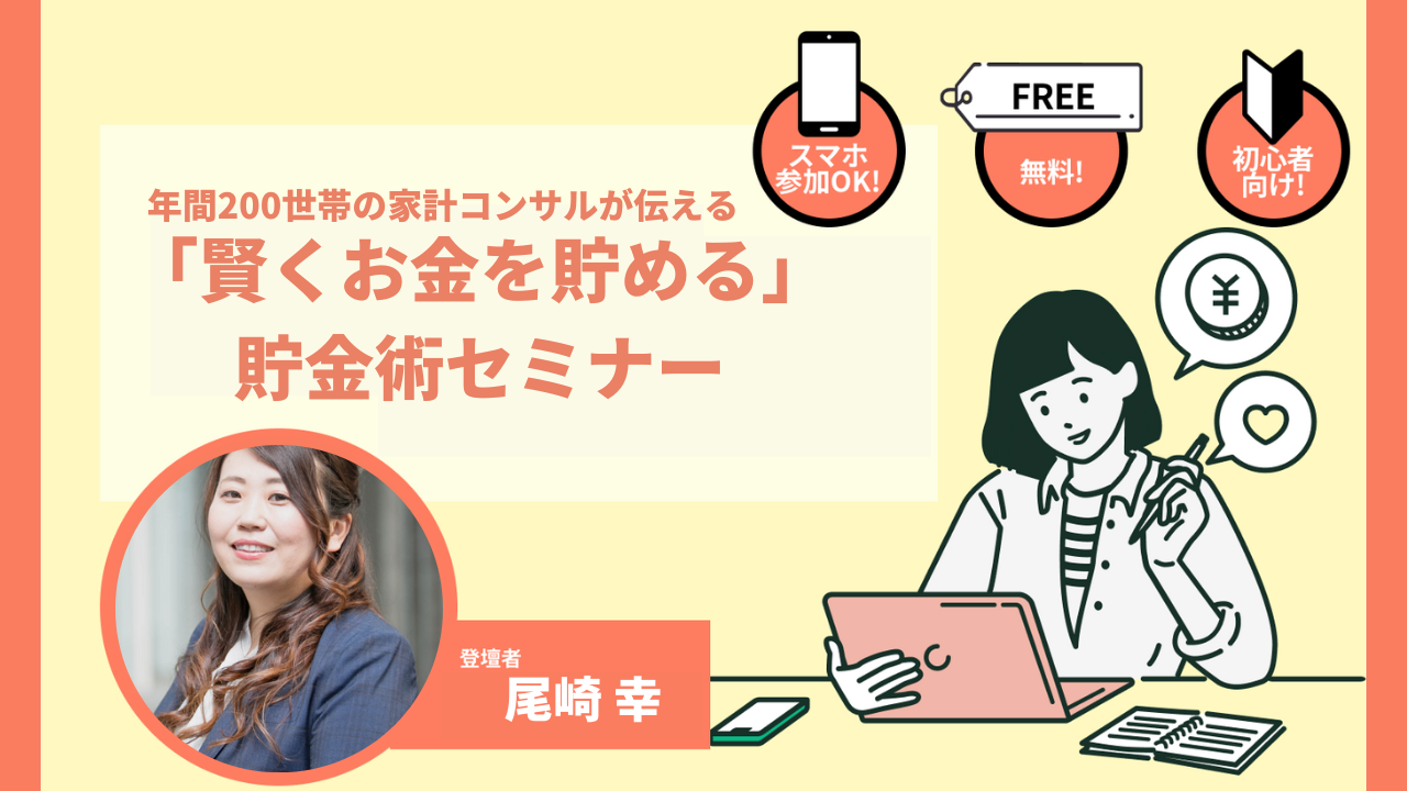 当日は、年間200世帯のマネープランを担当、オンラインをメインに全国の20代~40代のご夫婦に家計相談・お金の基礎知識・ライフプランをご提案している、講師の尾崎幸様を迎えて「年間200世帯の家計コンサルが伝える”賢くお金を貯める”貯金術」に関するオンラインセミナーを実施いたしました。