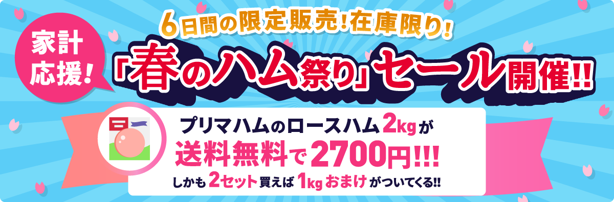ぜひこの機会に自慢のロースハムを、超お得に、たっぷりを味わってください!!