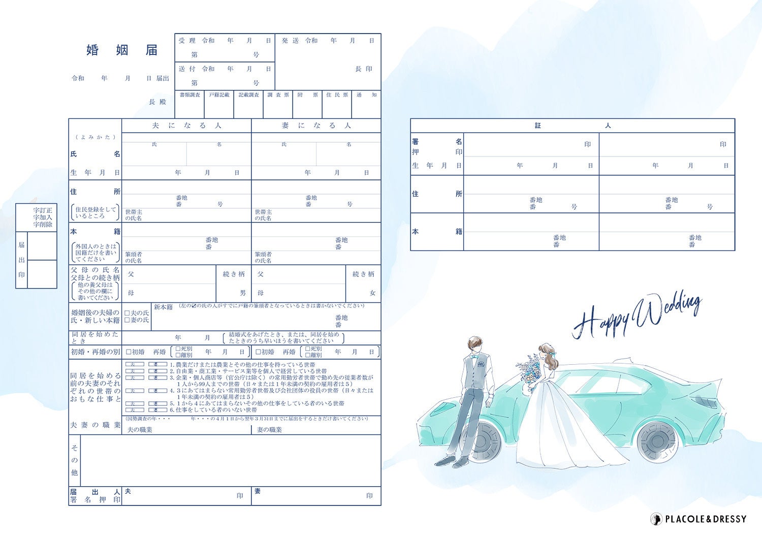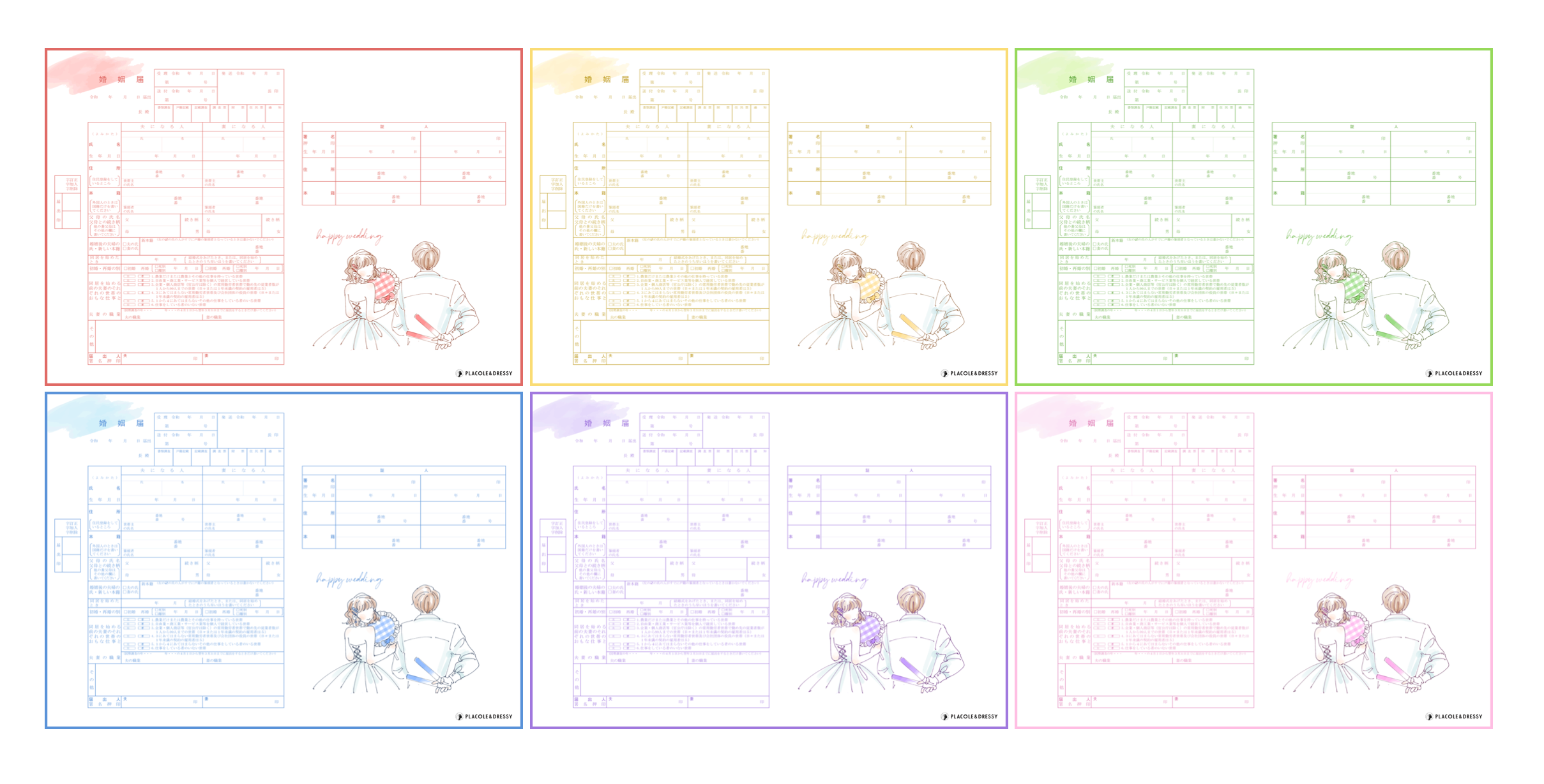 PLACOLE&DRESSYオリジナル 『PLACOLE&DRESSY婚姻届』は、開始から3ヶ月で1万ダウンロードを突破、現在もダウンロード数を増やし続けなんと6.5万ダウンロードを突破しております。プラコレオリジナルのデザインや自治体などが提供する婚姻届を合計100種類以上集約し、おふたりのイメージに合った婚姻届や都道府県のご当地限定婚姻届など、お好みの「婚姻届」を無料でダウンロードすることができる、多くの新郎新婦に好評いただいているサービスです。