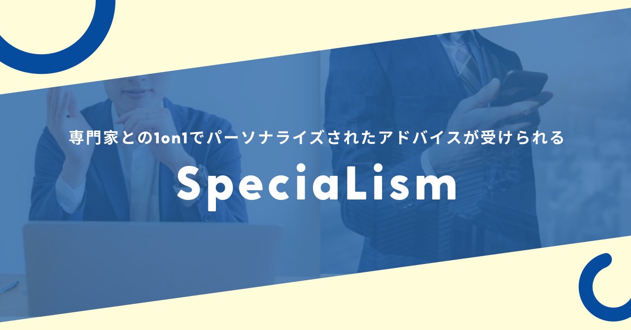 SpeciaLismは、専門家との1対1でパーソナライズされたアドバイスが受けられるサービスを提供する企業です。