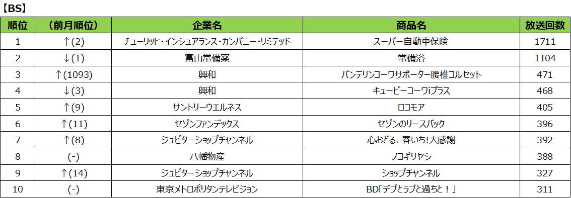 SMN株式会社(本社:東京都品川区、代表取締役社長:井宮 大輔)のグループ会社である株式会社ゼータ・ブリッジ(本社:東京都品川区、代表取締役:千輝 仁)は、2023年3月度の全国地上波25局、BS放送6局にて放送されたテレビCMの放送回数を調査し集計しましたので、お知らせいたします。
