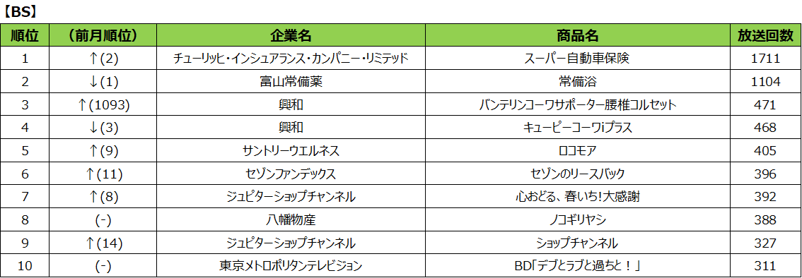 SMN株式会社(本社:東京都品川区、代表取締役社長:井宮 大輔)のグループ会社である株式会社ゼータ・ブリッジ(本社:東京都品川区、代表取締役:千輝 仁)は、2023年3月度の全国地上波25局、BS放送6局にて放送されたテレビCMの放送回数を調査し集計しましたので、お知らせいたします。