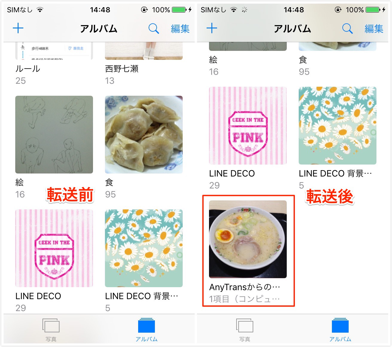5. 転送が完了したら、iPhoneで写真アプリを開いて、AnyTransのアルバムから確認します。