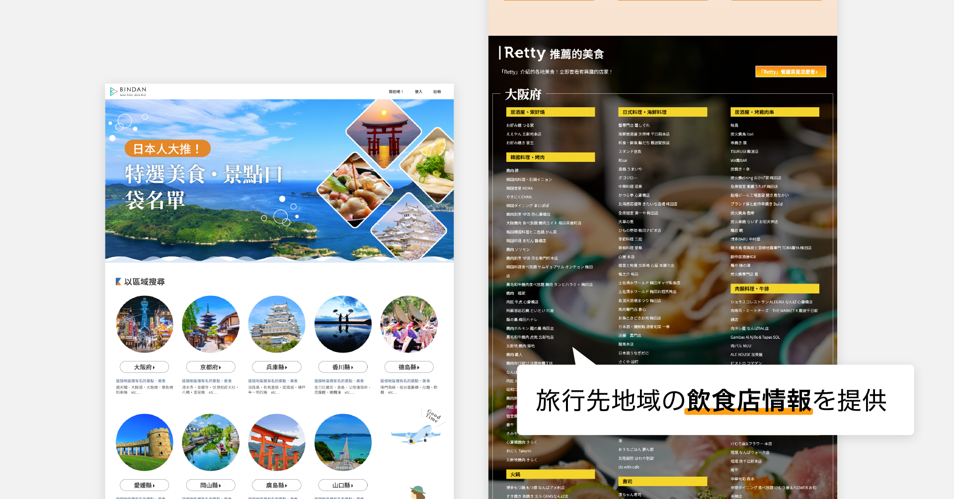 Rettyは五福旅行社で訪日旅行を予約した旅行者に、旅行先地域の飲食店情報を提供します。第一弾は関西国際空港を利用し、京阪神・瀬戸内地域の宿泊施設を予約した台湾人旅行者を対象に実施します。