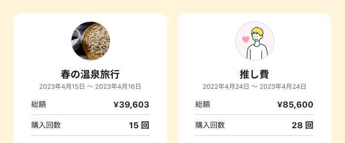 「一番安く購入できたお店はどこだったのか」「購入したのはいつだったか」「推し活に総額いくら費やしているのか」といった、「いつ」「どのくらい」お金を使ってきたかを振り返ることで、次に買うべきタイミングやお得に購入できるお店の発見につながり、より良い家計をサポートします。