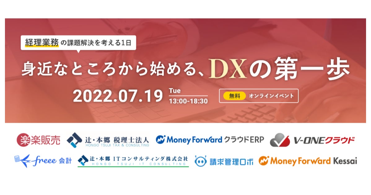 本イベントは、株式会社ラクスが主催するオンラインイベントです。経理業務のデジタル化を進めたいと考えている企業向けに、経理サービスベンダーが集い、成功事例の紹介やパネルディスカッションを行います。経理業務を改善するための”第一歩”を見つけていただけるような内容です。