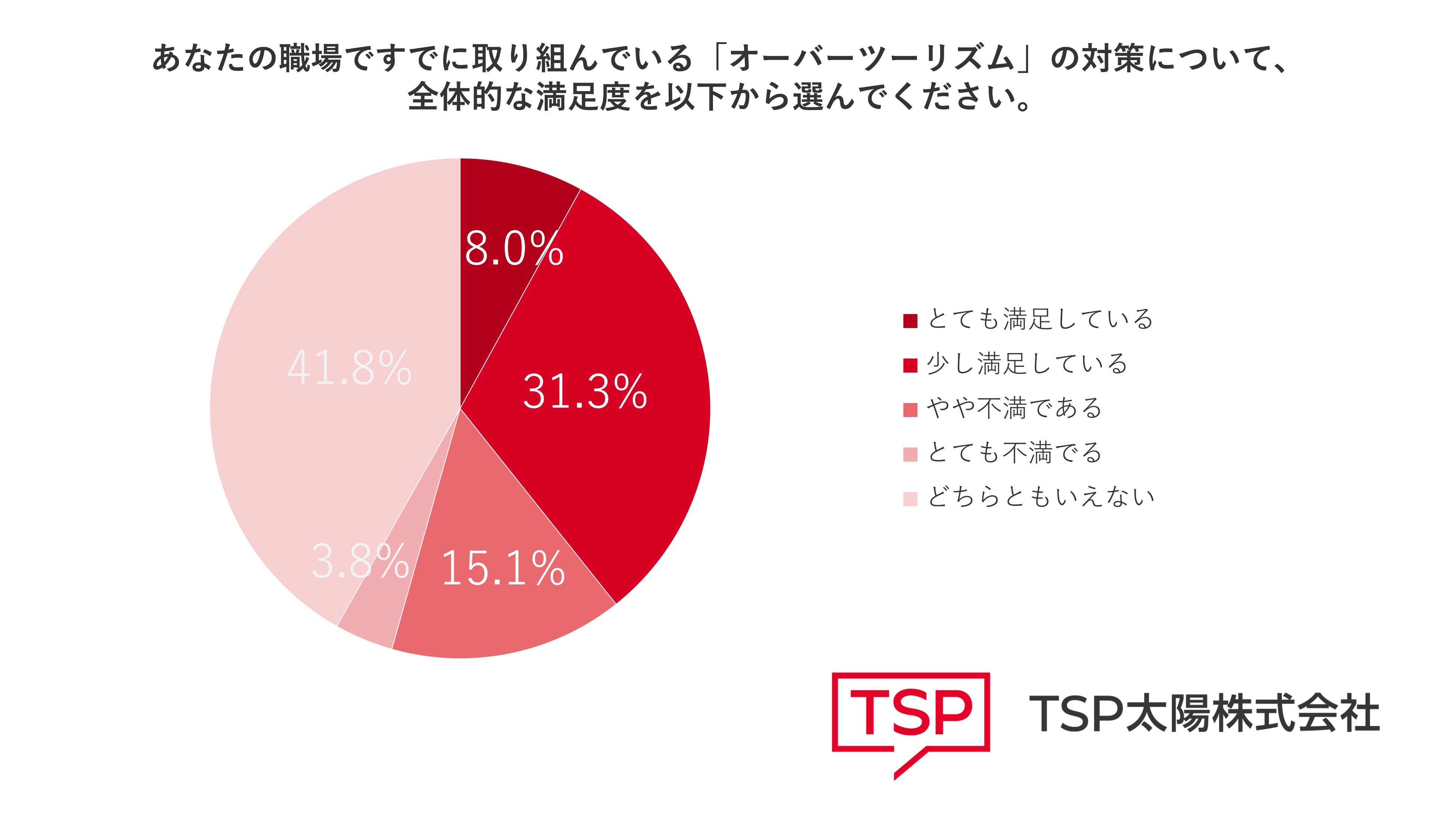 またこれらの対策への満足度は、職場・自治体ともに、とても満足している・少し満足しているという回答を合わせて約4割程度となっており、どちらとも言えないという回答が約4割という回答でした。