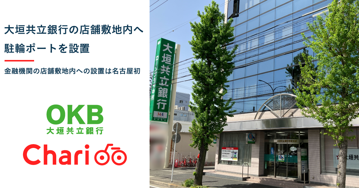 このため両社では、店舗内の空きスペースをチャリチャリのポートとして貸し出すことが大垣共立銀行が取り組むSDGsや地域活性化などにも資するものとして協議を進めてきたところ、今般の設置に至りました。