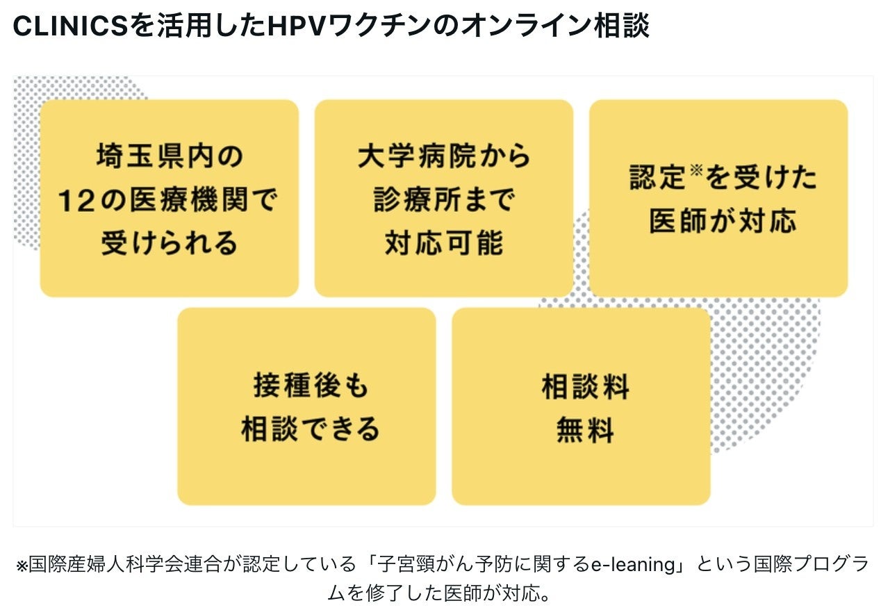 このような、接種前の疑問や不安の解消をサポートすべく、埼玉県産婦人科医会が解説したオンライン無料相談窓口にメドレーが「CLINICSオンライン」を無償で提供し、ご活用いただくことになりました。さらに接種前だけでなく、接種後の相談もサポートしています。