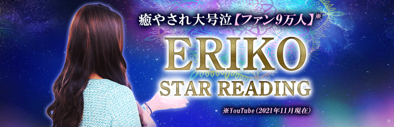 Youtube動画3900万回再生、ファン10万人以上(※)の人気を誇る鑑定士「ERIKO」。普段は対面鑑定NGの鑑定を、WEBで特別公開します。星を読む“圧倒的な的中力”と“癒やしの言葉”で、あなたの運命、あの人との恋、願いを叶える方法をお伝えします。