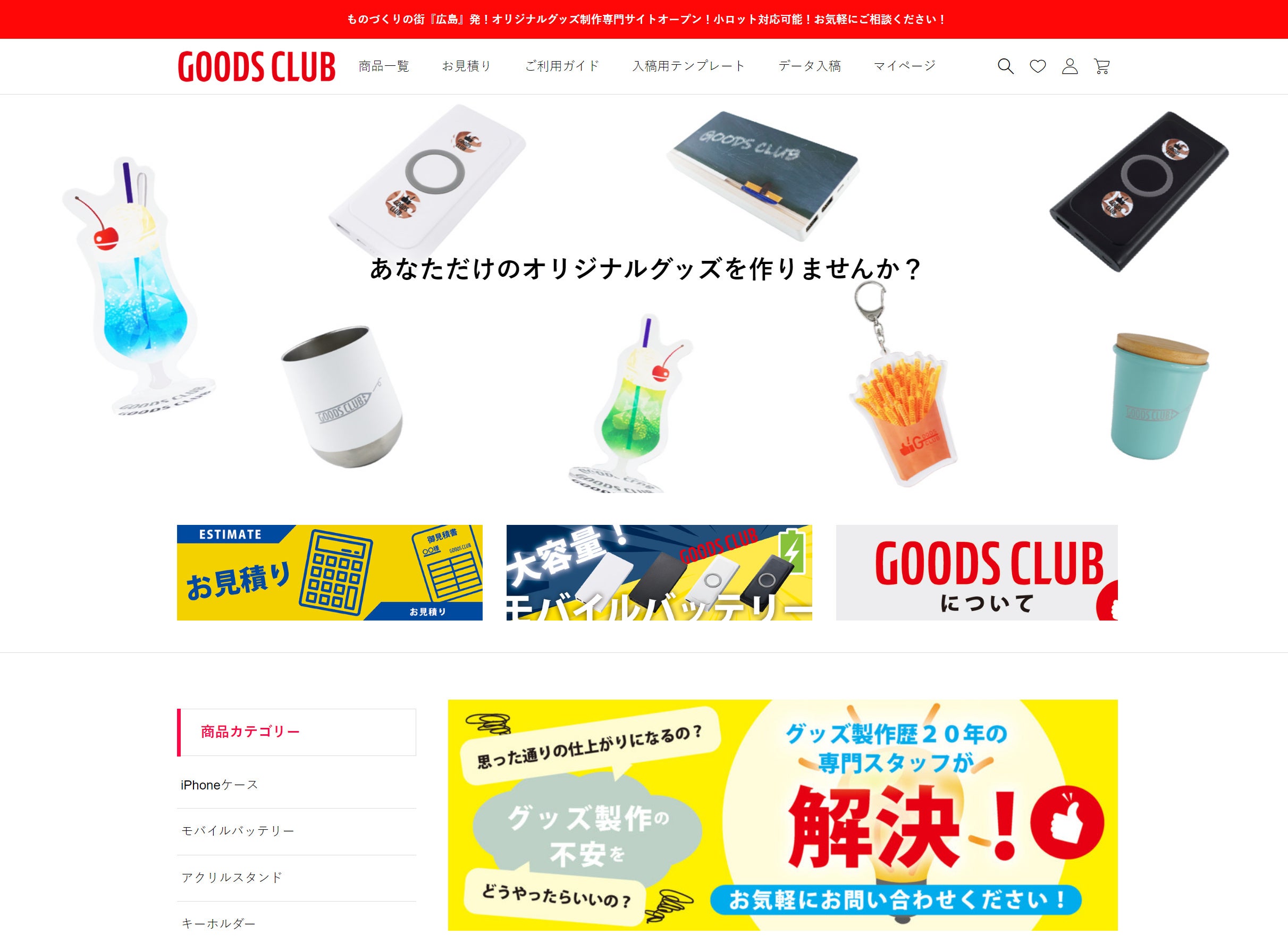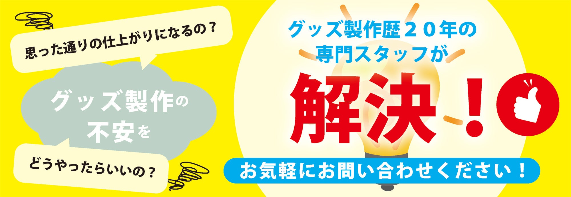 GOODS CLUBでは、グッズ製作歴20年の専門スタッフがお客様のご要望に親切丁寧に対応します。
