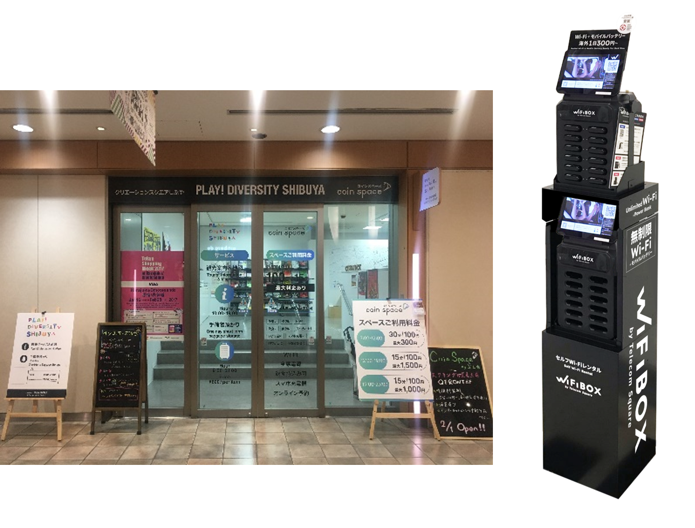 現在は成田空港・羽田空港・関西国際空港をはじめとする全国の主要空港や、東京駅構内、新宿観光案内所、新宿ミロードなどの市中や商業施設でもサービスを提供しており、国内外で多くのご利用をいただいております。この度、訪日外国人旅行者および国内におけるビジネスや観光、ギガ不足などの利用ニーズに応えることを目的に、渋谷地区初の設置として、クリエーションスクエアしぶやでのサービスを開始いたします。これによりWiFiBOXの設置箇所は計12施設・17箇所となりました。今後も渋谷エリアを含む市中展開に加え、順次、国内の駅・空港への設置を進め、よりお客様の利便性の向上を目指してまいります。