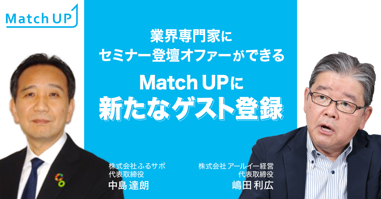 当社は、国内最大級のオンライン展示会「ITトレンド」や、ビジネス動画プラットフォーム「チラヨミ」を通して、多くの企業様、業界専門家の方とのお取引があり、自社のマーケティングノウハウを活かし、このような課題を解消するため、業界専門家にセミナー登壇オファーができるマッチングプラットフォーム「Match UP」の提供を開始いたしました。