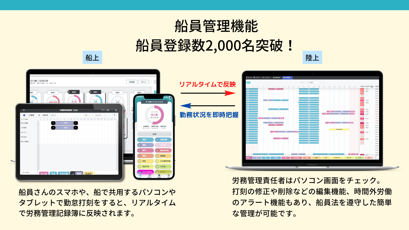 なお、本年5月に動静管理機能、6月に受発注機能、さらに今夏には給与連携機能の追加リリースを予定しており、今後も海事産業における課題解決に特化したサービスの拡充を加速させていきます。