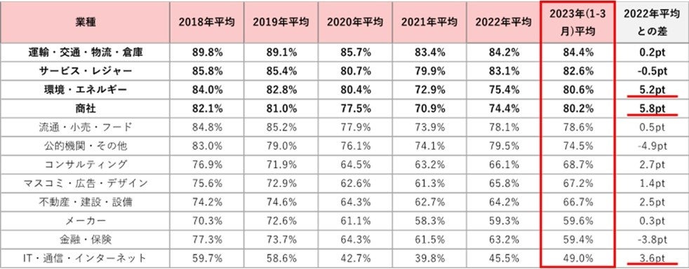 特にこの傾向が見られる業種は「IT・通信・インターネット」で、人材獲得に積極的な企業が多いと考えられます。