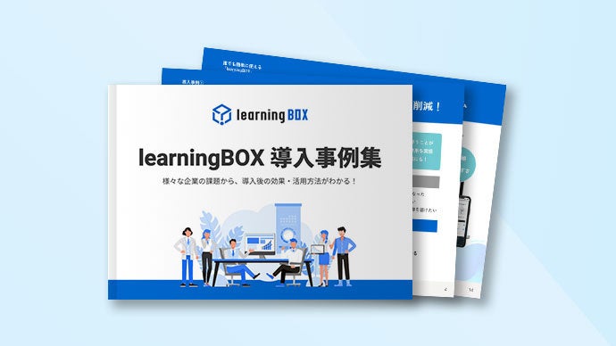 今回ご紹介した企業さまの他にも、learningBOXご利用企業さまの事例をまとめた「導入事例集」をご用意しております。各企業さまの learningBOX導入前の課題、導入背景、導入後の効果や活用方法についてご紹介していますのでぜひご覧ください。