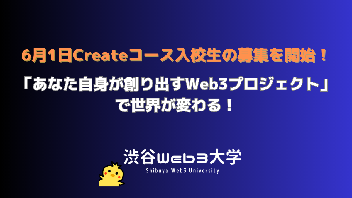 渋谷Web3大学では、Web3や新しい技術と掛け合わせて世界を変えていくプロジェクトを実行するCreateコースの6月入学生を募集しています。