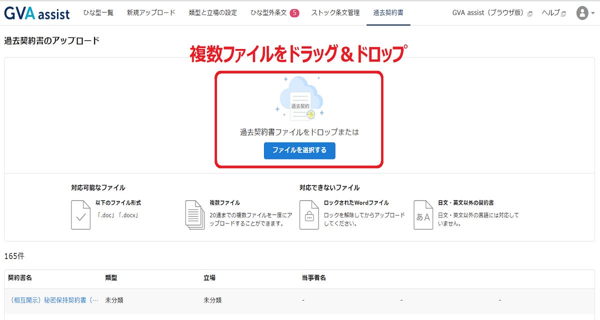 ・GVA assistの管理画面から審査済みWordファイルを複数ファイル同時にアップロードできる