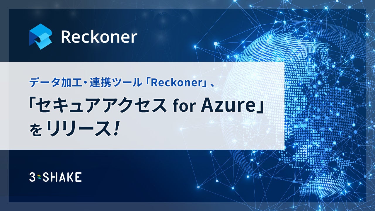 データ加工・連携ツール「Reckoner」は、圧倒的な使いやすさを追求したノーコード型ETLツールとして様々な企業にご利用いただいておりますが、セキュリティに対する情勢を踏まえて、より一層セキュアな接続環境をご提供すべく「セキュアアクセス for Azure」をリリースいたしました。これにより、Azure上にある様々なリソースに対してセキュアな連携が実現可能になりました。