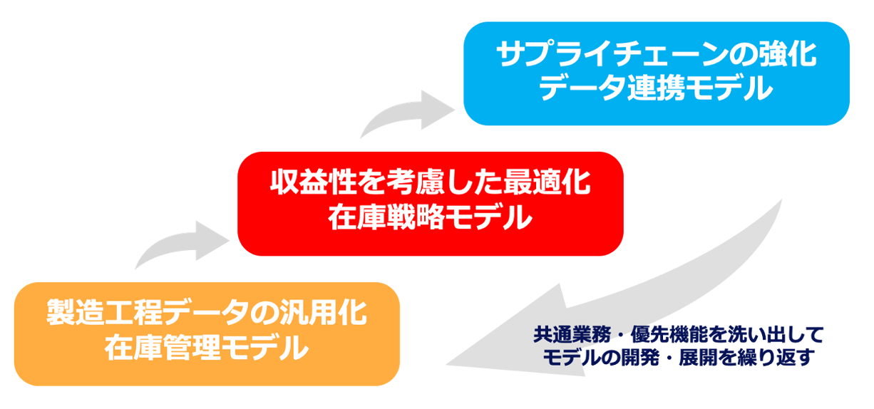 “製造現場の未来を変える、そして製造現場から未来を変える”をミッションに掲げ、モノづくりの価値向上のため在庫戦略モデルの実用化に挑戦していきます。