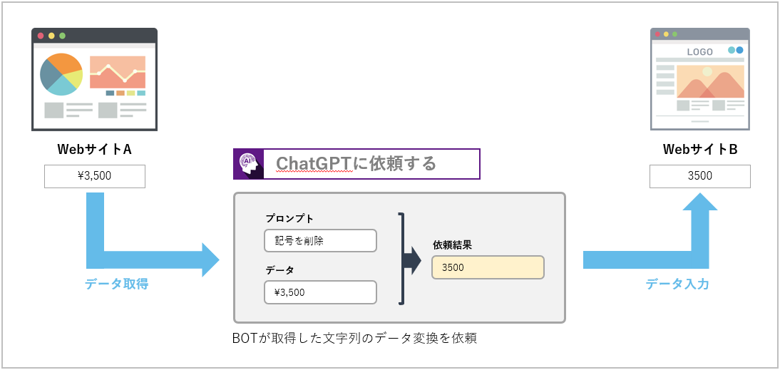 クラウドBOTは、仮想ブラウザを自動操作する事で業務の自動化やシステム連携を実現するクラウド型RPAです。これまで自動操作で取得したデータの加工は簡易的な処理に限られ、複雑なデータ処理はコードを注入するローコード対応が必要でした。