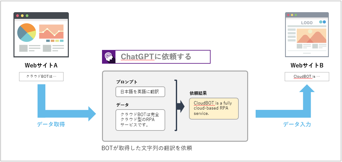 クラウドBOT®は、Webブラウザを自動操作するBOT(ロボット)をノーコードで作成できる、クラウド型のRPAサービスです。単純なデータ入力業務からWebアプリケーション間のデータ連携など、Webブラウザ上で行っている様々な操作をクラウド上で自動化する事ができます。