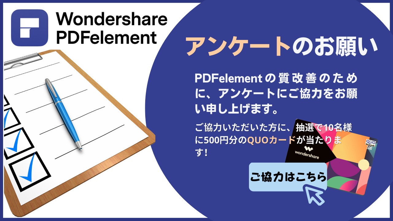 PDFelementユーザー様の中から無作為に抽出しアンケート調査のご依頼をいたします。