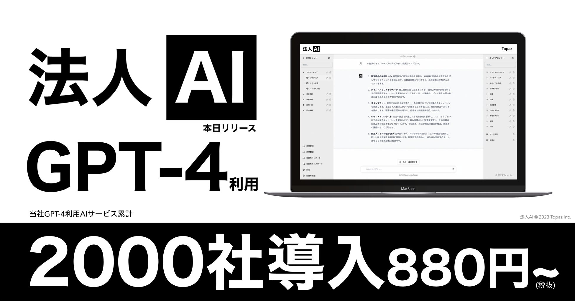 【2000社導入】法人向けGPT-4が使える「法人AI」リリース!