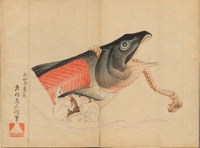 「肉筆画帖 塩鮭と白鼠」(北斎館)