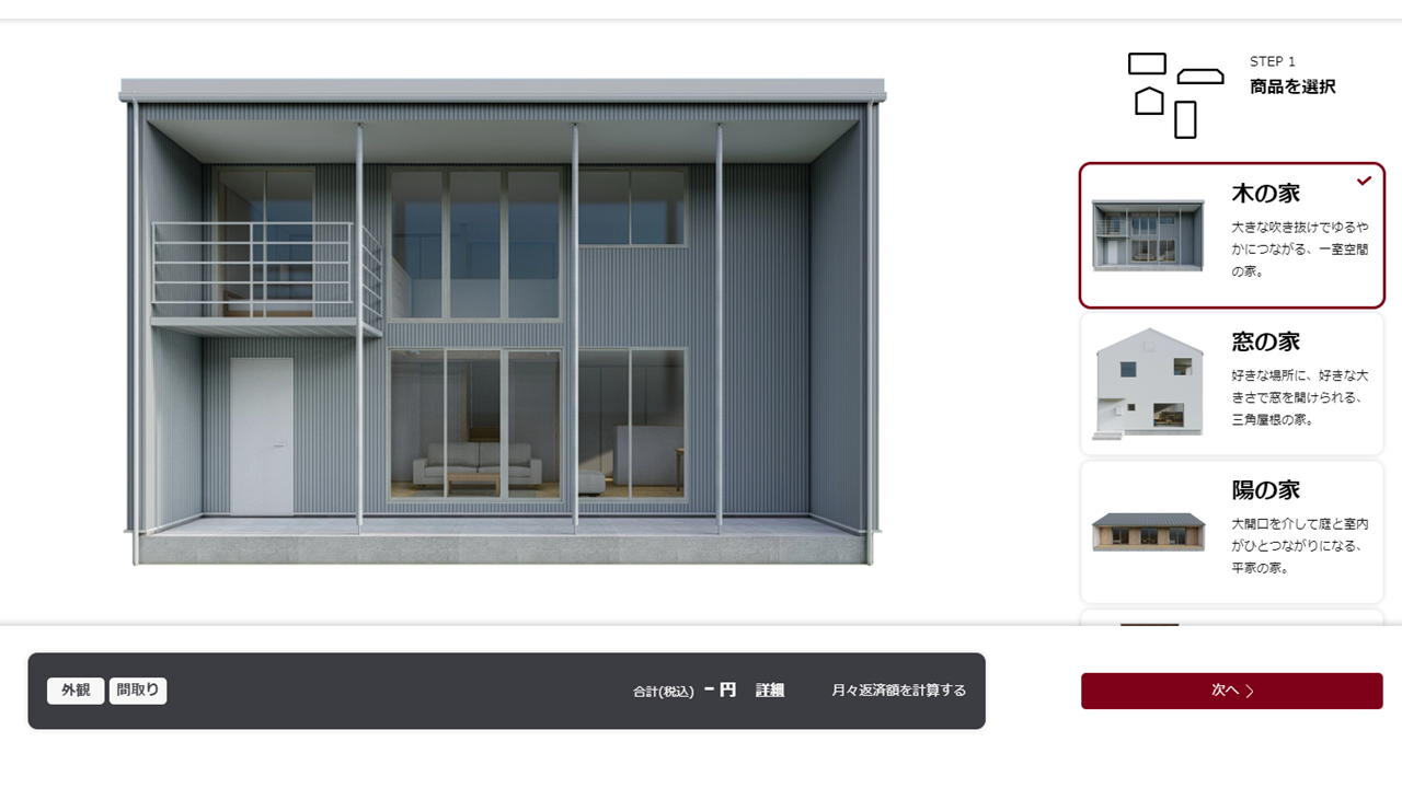 無印良品の家の4つの家からベースプランとなる間取り、外装を自由に選択していただけます。