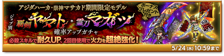 ■攻守兼備の超強力な限定モデル!「ジョブ別 覇剣ヤマト・霊刀マガツ確率アップガチャ」販売中!