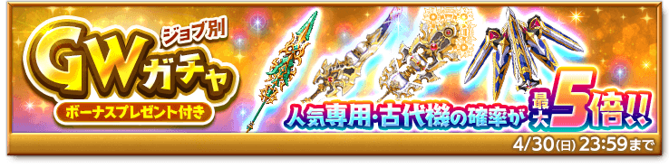 ■人気の専用・古代機が確率最大5倍!「ジョブ別 GWガチャ」販売中!