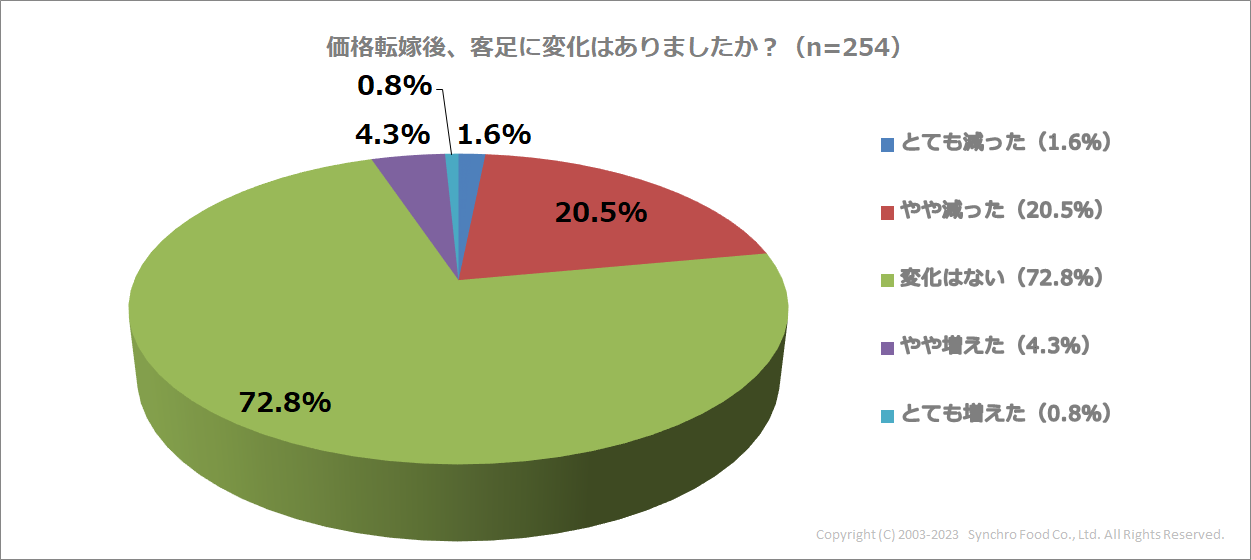 値上げ実施店のうち72.8%が「客足の変化なし」と回答