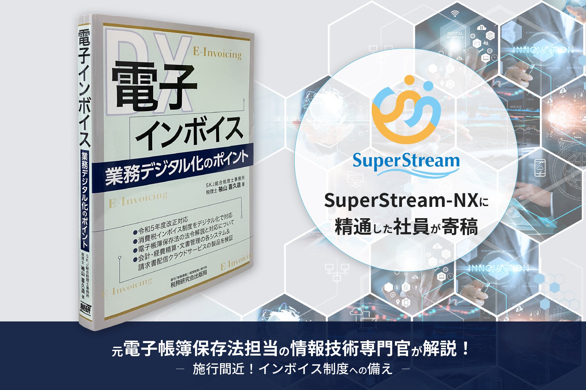 本書では、令和5年10月から始まる消費税インボイス制度対応が迫る中、インボイス制度や電帳法の解説と各システムベンダよりインボイス制度に適した製品の解説しています。システム製品の一つとして、スーパーストリーム株式会社の上野弥生と畠山明子が弊社会計・人事給与ソリューション「SuperStream-NX」のポイントを概説いたしました。