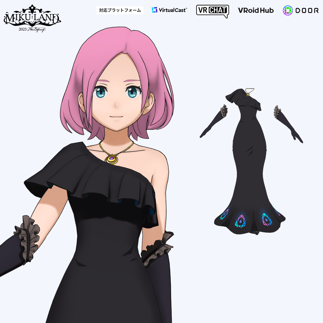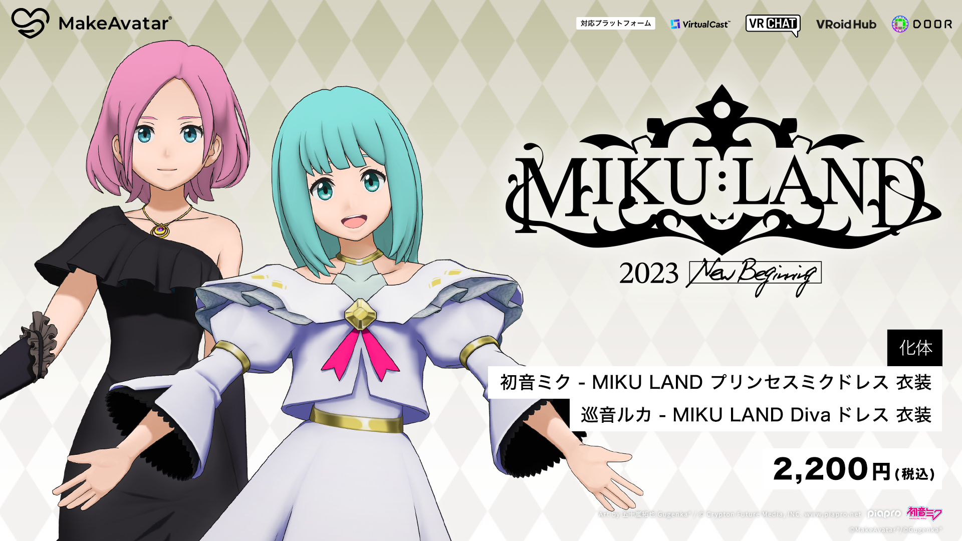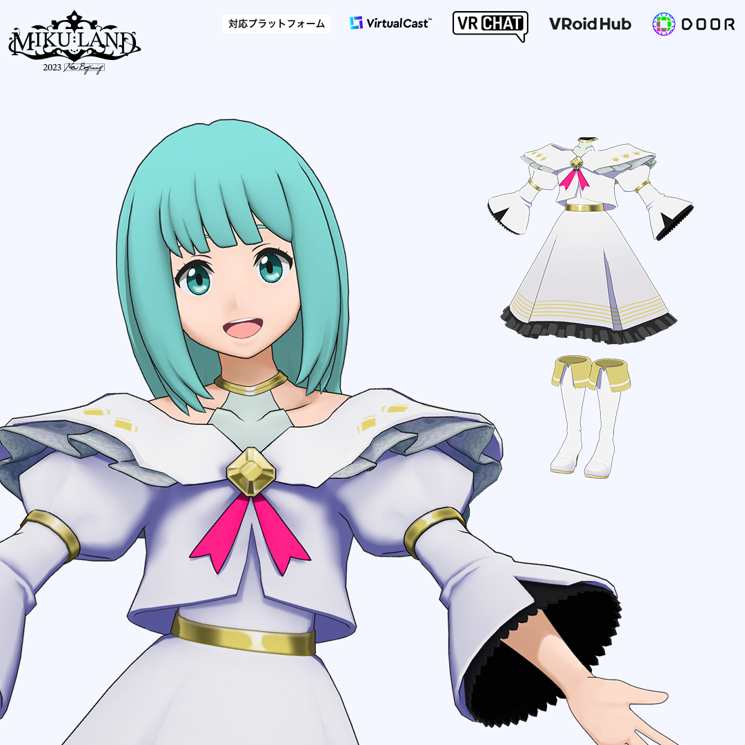 初音ミク公式VRワールド『MIKU LAND 2023 New Beginning』のそれぞれのワールドをイメージした3DCGアバター衣装です。自分のアバターに衣装を着せてVR空間に遊びに行くことができます。