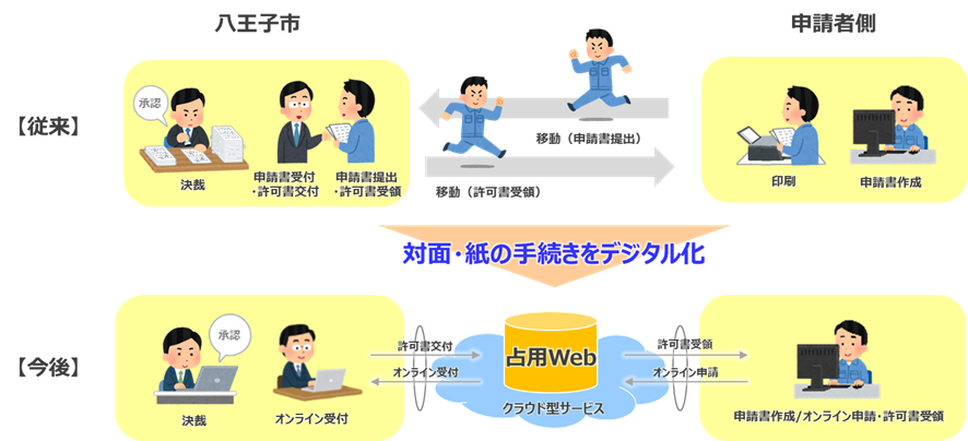 道路占用許可申請業務のオンライン化イメージ