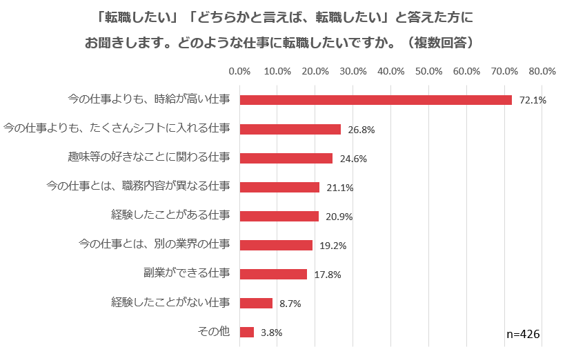 転職したいのは「今の仕事よりも、時給が高い仕事」72.1%