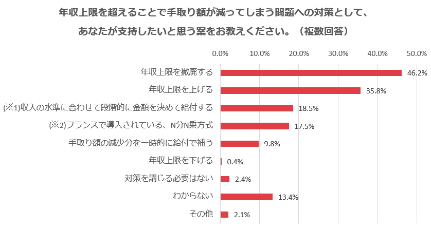 年収の壁問題の解決策として支持するもの「年収上限撤廃」46.2%