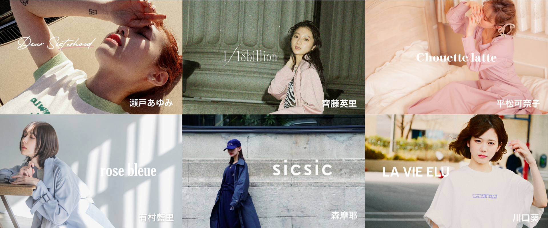 今回、合同展示会を開催した6ブランドは、モデル瀬戸あゆみがプロデュースする「Dear Sisterhood」、平松可奈子がプロデュースする「Chouette latte」、タレント・モデルの有村藍里がプロデュースする「rose bleue」、