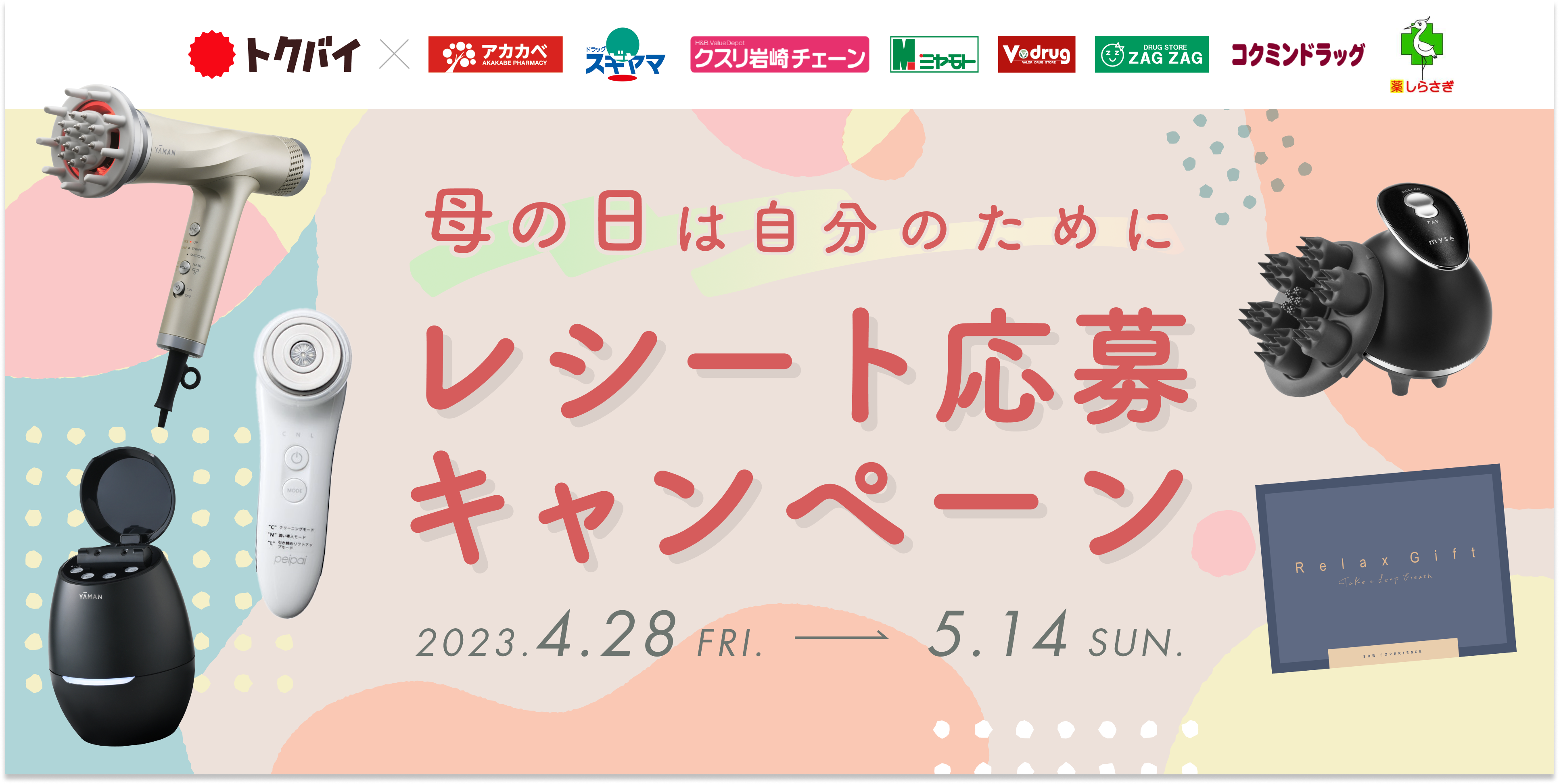 ▼「母の日は自分のために!ドラッグストア合同レシート応募キャンペーン」