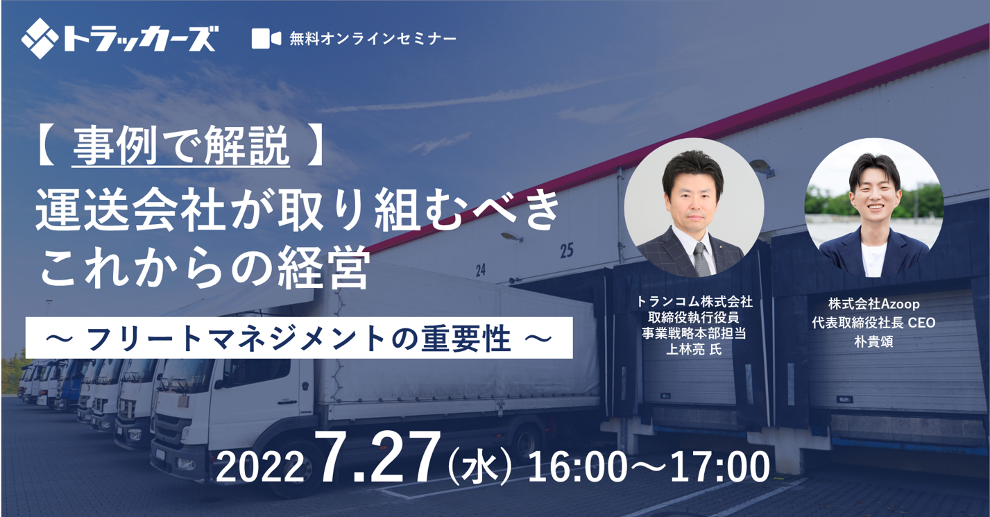 2024年問題・燃料費の高騰など、運送業界を取り巻く環境はますます厳しくなっています。そうした状況に危機感を抱きつつも、対応を進められていないという経営者様の声をお聞きすることも増えてきました。そこで実運送も運営されている、トランコム株式会社 取締役専務執行役員 事業戦略本部担当 上林亮 氏をお招きしまして、事例を交えながら、運送事業者が取り組むべきこれからの経営について解説いたします。