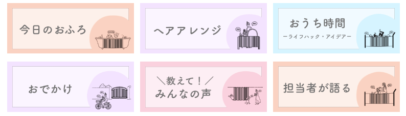 コンテンツとしては、子どもとの「バスタイムのエピソード」や「ヘアアレンジ」をシェアしたり、「おうち時間」や「おでかけスポット」といったテーマで、子どもと過ごす時間についてのアイデアやヒントが見つかるトークメニューが準備されています。