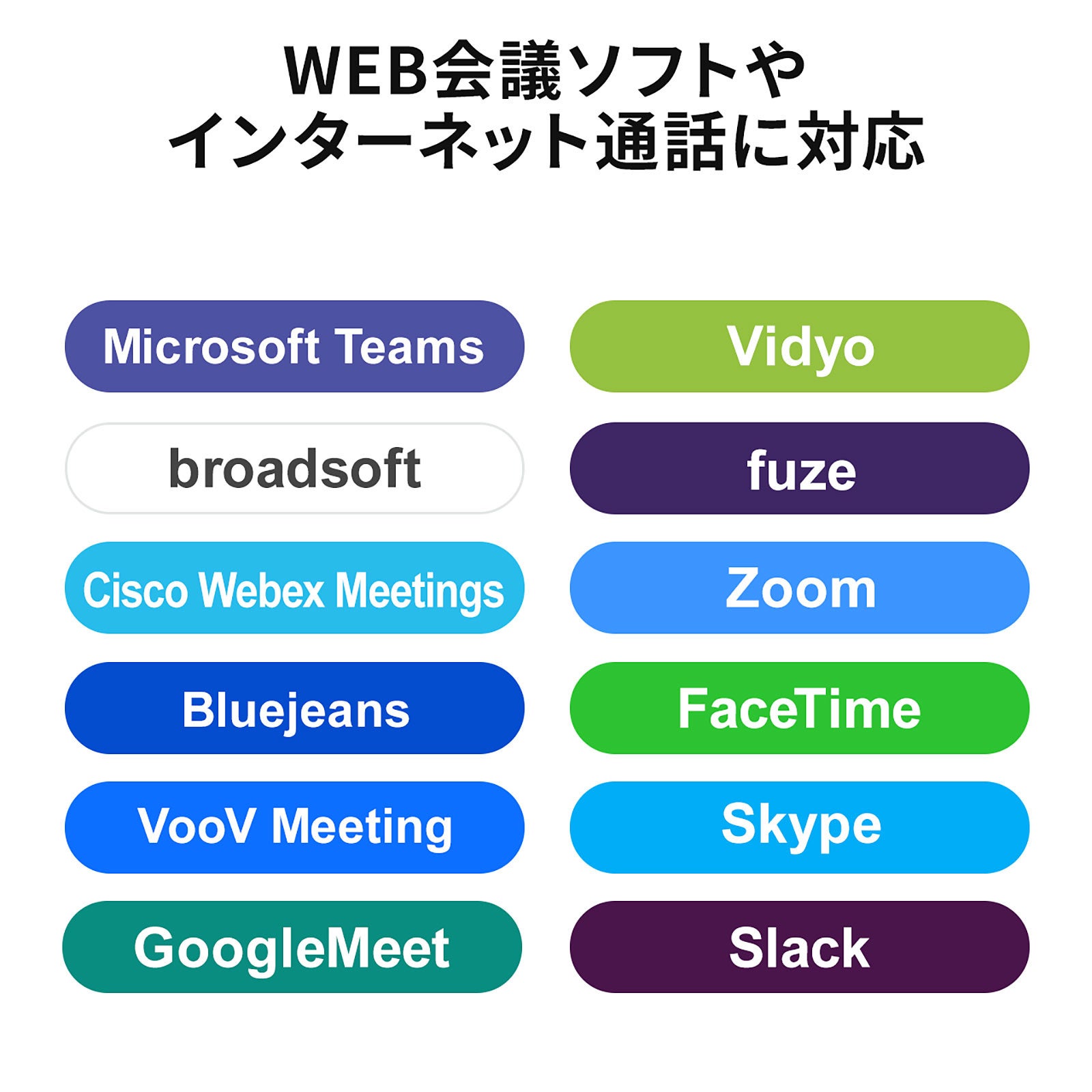 Zoom、Skype、Microsoft Teams、Webexなど各種ソフトに対応しています。
