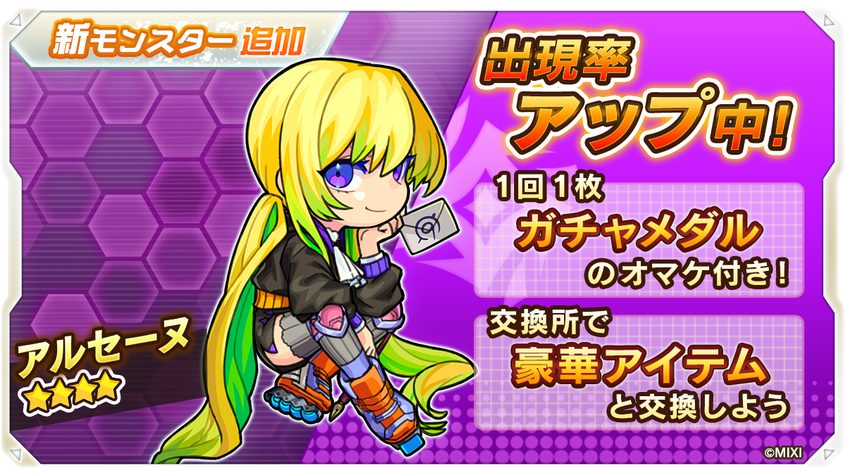 ■モンストキャラの「アルセーヌ」がガチャに新登場!