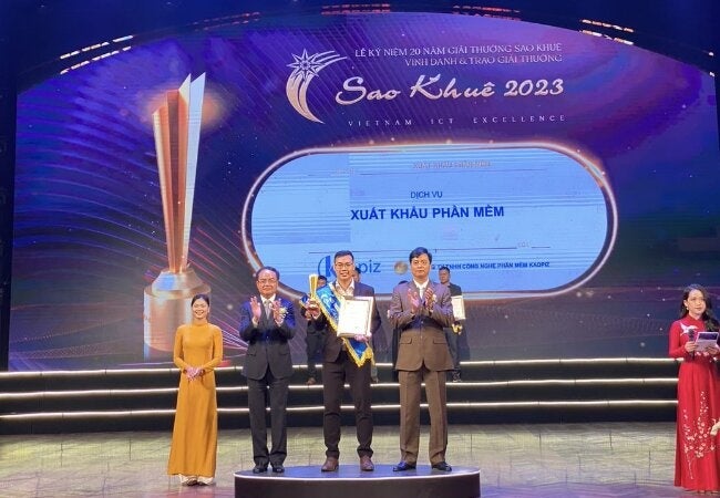 授賞式は2023年4月28日にQuan Doi劇場で開催されました。株式会社カオピーズ ソリューションズ研究開発部長のNguyen Cong Thanh氏が参加し、トロフィーと証明書を受け取りました。