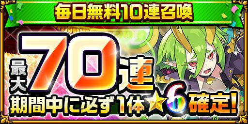 さらに期間中、毎日無料10連召喚(最大70連)が行え、★6モンスターを1体確定で仲間にすることができます。