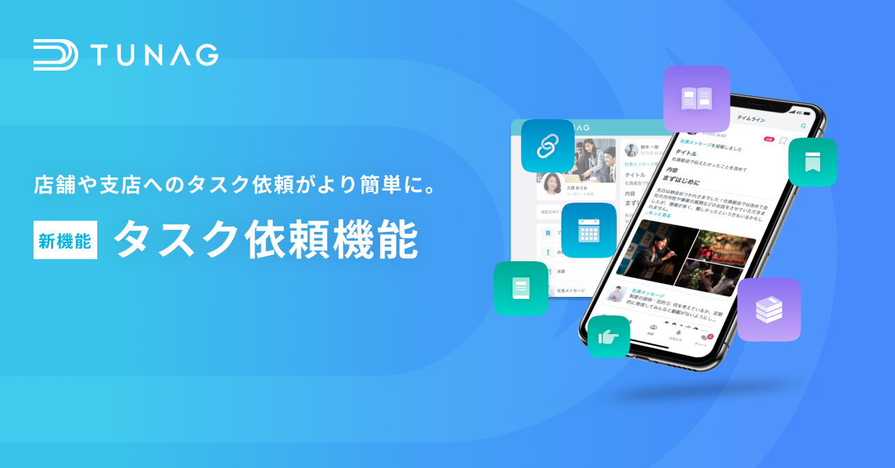 TUNAGのアカウントを持つすべての従業員の皆さまが、店舗や支店などに対してTUNAG上でタスクを依頼できるようになります。加えて、タスクの進捗状況を確認できるため、依頼者から従業員へ進捗を確認する手間が軽減されます。
