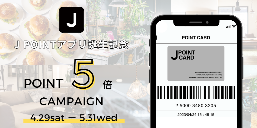 アプリのリリースを記念し、4/29(土)から5/31(水)の期間中、全店舗でポイント5倍のキャンペーンを開催。