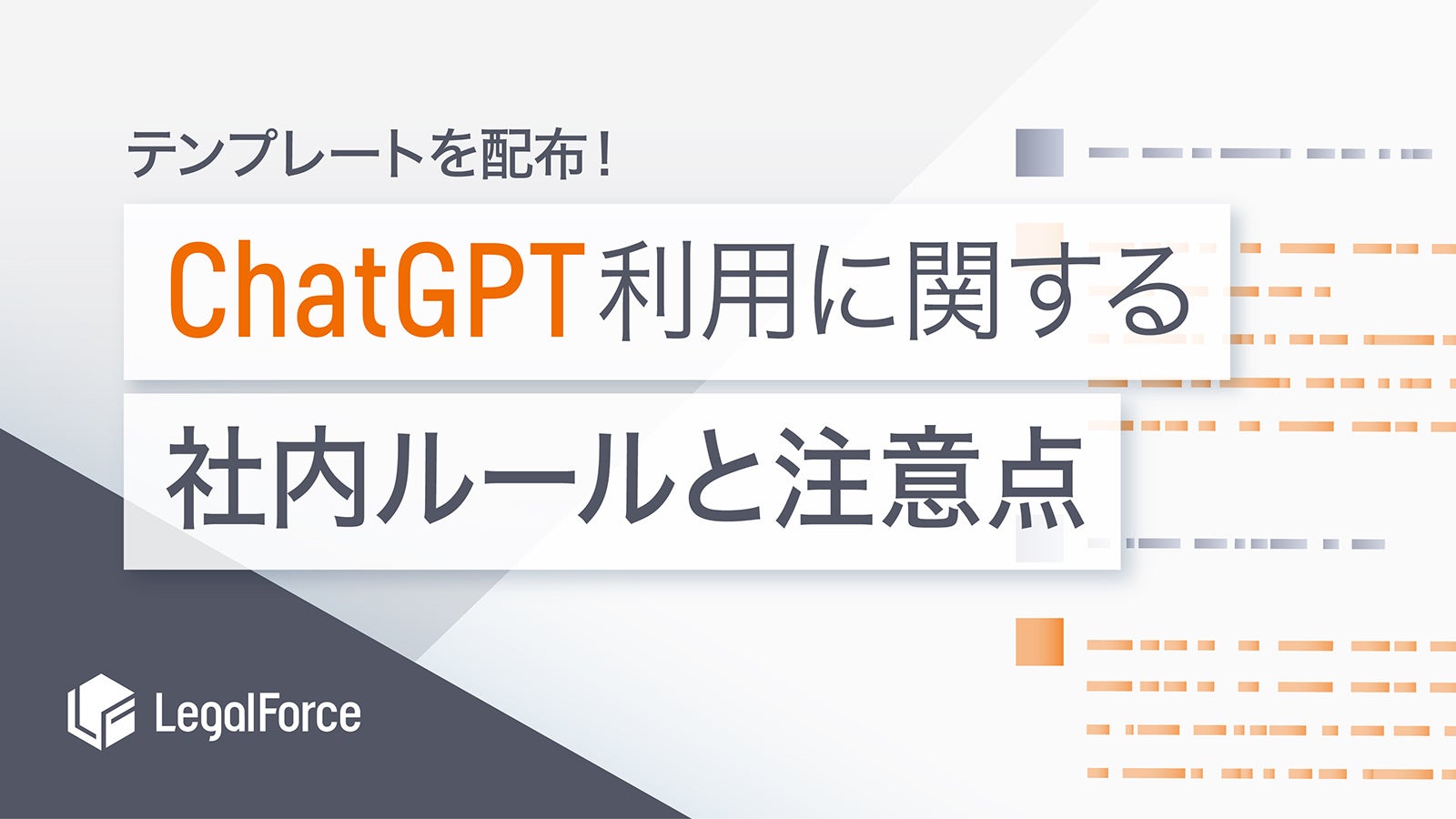 LegalOn Technologiesは、これまでAI 契約審査プラットフォーム「LegalForce」にて、規程管理規程やソーシャルメディア利用規程など、数多くの社内規程の提供や作成の支援をしてきました。また2023年5月に「ChatGPT」を活用した契約書の修正をサポートする「条文修正アシスト」機能*の提供を予定している他、社内でも「ChatGPT」の活用を幅広く行っています。今回、これらの経験を活かし、「ChatGPT」の活用を検討している企業向けに、当社の弁護士が監修した「ChatGPT利用に関する社内ルールと注意点」を提供いたします。