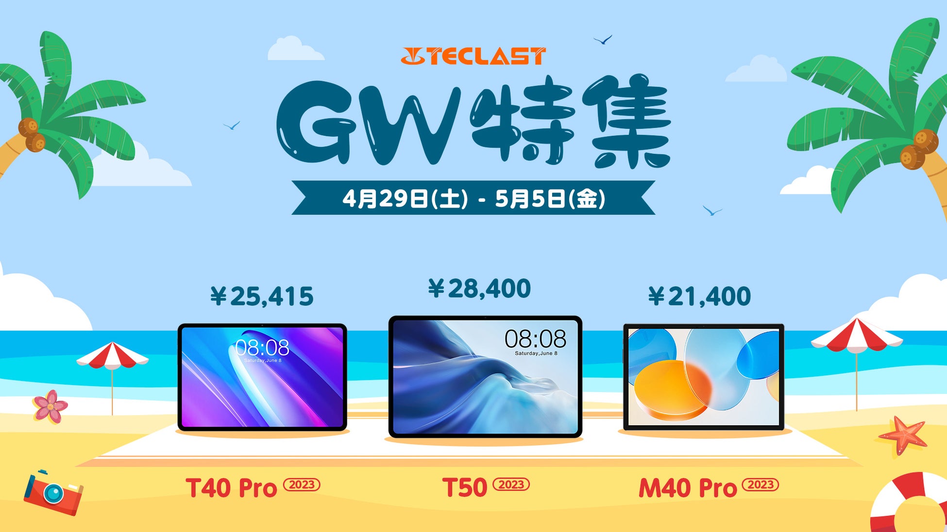 5月5日(金)まで、Teclast GWセール実施されています。2023年アップグレードされた「T50」、「T40 Pro」と「M40 Pro」などは古いバージョンの欠点を消去され、より良いエクスペリエンスを提供できます。安い価格でよりインテリジェントな生活を楽しめましょう!